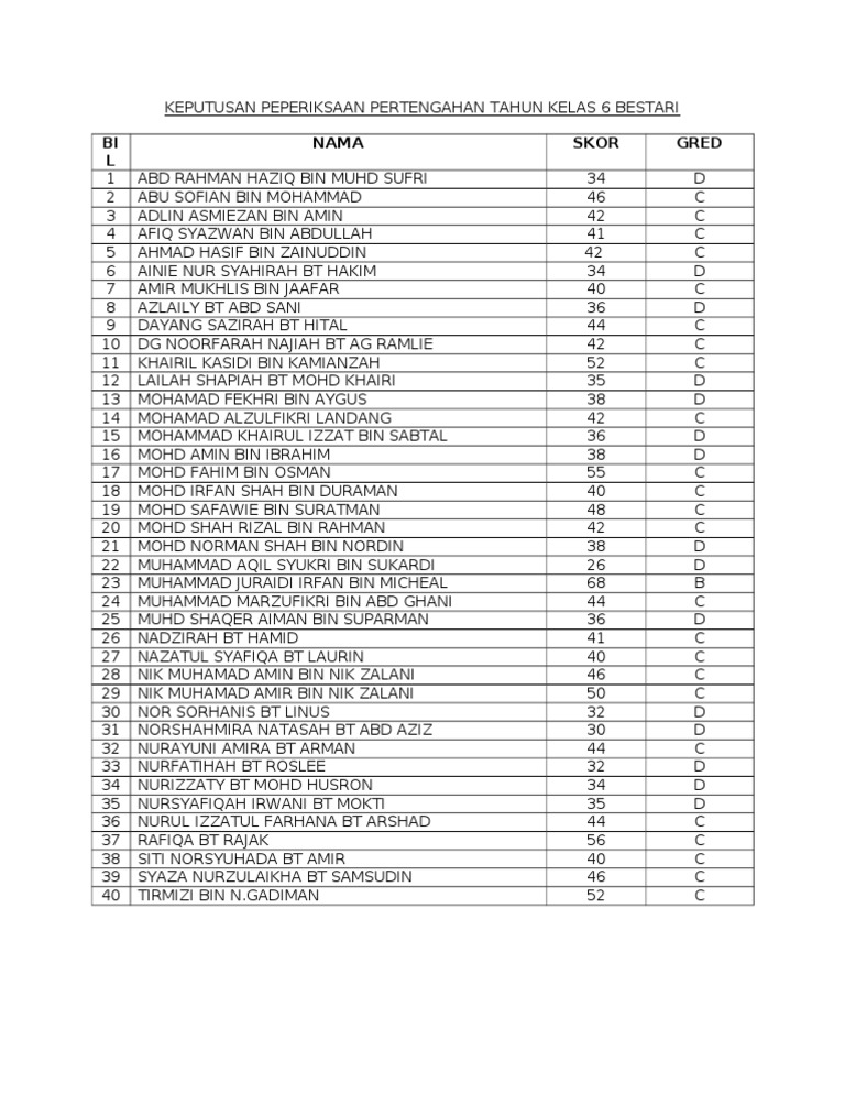 Savesave keputusan peperiksaan pertengahan tahun 5e3 for later. Text of peperiksaan pertengahan tahun 5srt 2014. 1.kamali a/p ganesan (5a) 2.siti sufiah bt safuan(5a). Markah( 0% b8 using $he da$a in a%le 1.2 dra) a %ar graph o, num%er o, s$uden$s agains$ )eigh$. Cara membuat semakan saps ibu bapa.